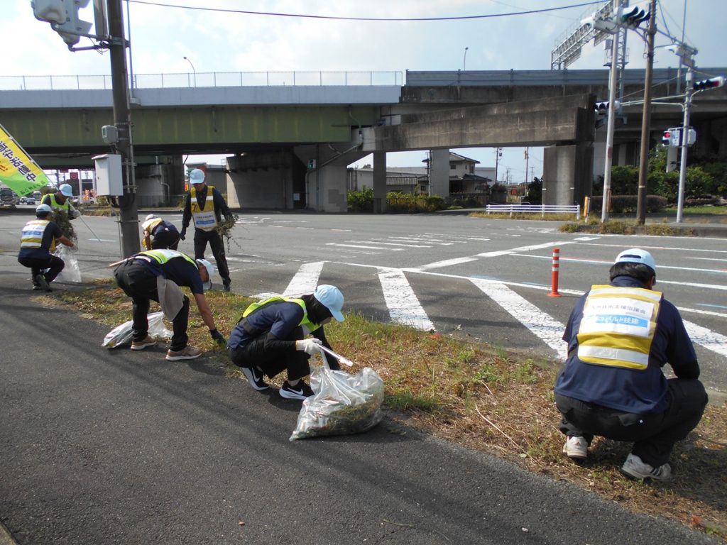 当日は14人の社員が参加し、二手に分かれて歩道部の除草作業を中心に清掃を行いました。
