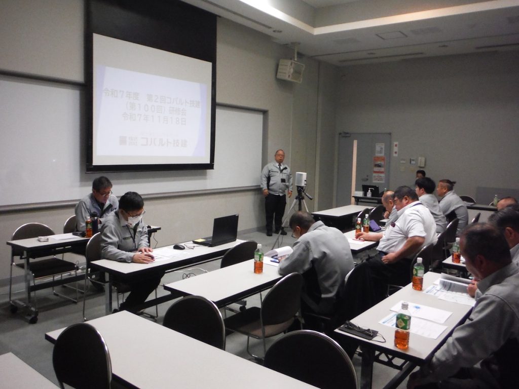 令和7年11月6日(木)から11月21日(金)にかけて、長崎、熊本、宮崎、大隅、鹿児島の全5地区、全10日間の日程にて、第100回コバルト技建研修会が開催されました。今回の研修会では記念すべき第100回目を迎え、弊社において一つの節目となる会になりました。この開催を通過点の一つとして、これからも意義のある研修会を開催できるよう取り組んでまいります。